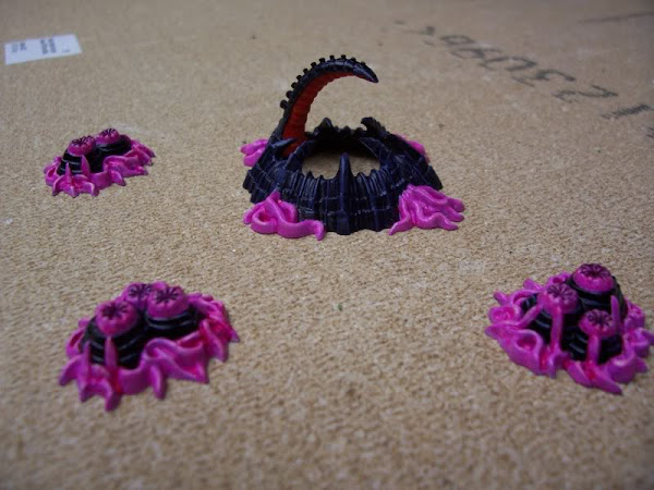 Between some other painting projects, I finally got around to painting some of the terrain that came with the Battle for Macragge boxed set for 4th Edition Warhammer 40,000. That set came with some interesting extras, and these are the first of them that I've actually gotten around to painting.